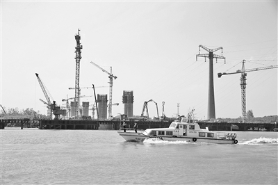“大桥施工水域所处的大港段是长江镇江段辖区最繁忙的水域,拥有最多的各类码头,最多的水上服务区,最多的营运客汽渡船,最多的大型海轮靠离泊。”石兵告诉记者,在大桥施工水域下游分布了46座散杂货码头,散化危险品码头泊位10座,年吞吐量达8000多万吨;水上服务区加油站点4家,每天有8艘客汽渡船平均营运近400艘次,水上安全监管压力巨大。