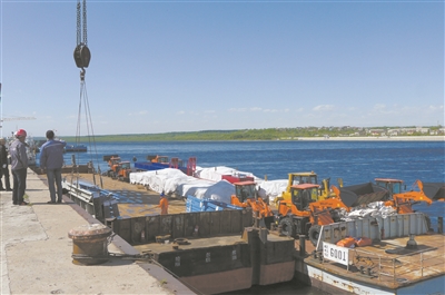 5月18日,黑河口岸一片繁忙景象。笔者从黑河海关获悉,1-4月,黑河口岸进出口总值12.6亿元人民币,比上年增长1.4%,占同期黑龙江省各口岸进出口总值的3%。邱齐龙 摄