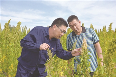 虽然压力重重,佟德友却并未退缩,他先统一队员思想,联系帮扶企业选购优质种子,做通“两委班子”成员工作,带头试种了87亩藜麦。秋收时,试种的藜麦亩产最高达到了220斤,收入却是莜麦、亚麻等传统农作物的5至10倍。藜麦试种大获成功!工作队用事实说话,成功转变了贫困户的保守思想。村民们尝到了甜头,纷纷表示:“只要工作队让干的,我们都干。”