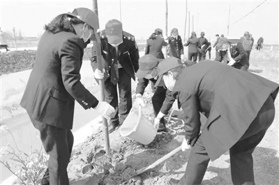 活动中,志愿服务队对部分乡村道路进行了清扫清洁,拾捡了垃圾和废弃物,并就《长江保护法》及垃圾分类等知识向村民进行了普及宣贯。随后大家沿着一条新修复的水渠到达植树点,挖掘土坑、搬抬树苗、挥动铁锹、培土定植、抬桶洒水等,各个干劲十足、环节衔接有序,不到一个小时,栽下近30株树苗,为美丽乡村画卷添上了一抹崭新的绿色。黄国舜 摄