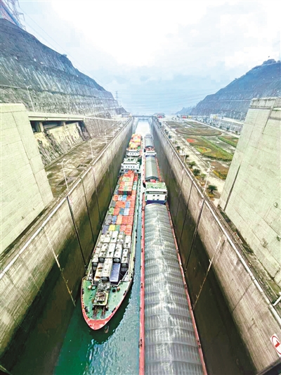 近日,据长江三峡通航管理局统计数据显示,2021年三峡枢纽航运通过量达15058万吨,同比增长9.29%,再创历史新高,其中三峡船闸通过量14644万吨,超过其设计通过能力的46%,“大国重器”航运效益凸显。