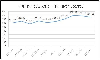 本期中国长江煤炭运输综合运价指数(CCSFI)为753.25点,较上期下跌3.97%。