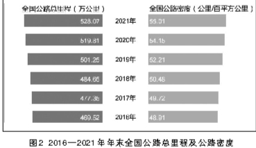 年末全国公路总里程528.07万公里,比上年末增加8.26万公里。公路密度55.01公里/百平方公里,增加0.86公里/百平方公里。公路养护里程525.16万公里,占公路总里程比重为99.4%。