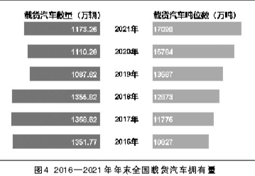 年末全国拥有公路营运汽车1231.96万辆,比上年末增长5.2%。分结构看,拥有载客汽车58.70万辆、1751.03万客位,分别下降4.2%和4.9%;拥有载货汽车1173.26万辆、17099.50万吨位,分别增长5.7%和8.3%,其中,普通货车406.94万辆、4923.43万吨位,分别下降1.7%和增长5.6%,专用货车60.39万辆、718.76万吨位,分别增长19.2%和20.5%,牵引车346.68万辆、增长11.5%,挂车359.25万辆、增长7.4%。