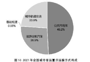 全年完成城市客运量993.84亿人,比上年增长14.0%。其中,公共汽电车客运量489.16亿人、运营里程335.27亿公里,分别增长10.6%和10.7%,城市轨道交通客运量237.27亿人、增长34.9%,巡游出租汽车客运量266.90亿人、增长5.4%,城市客运轮渡客运量0.51亿人、增长30.5%。