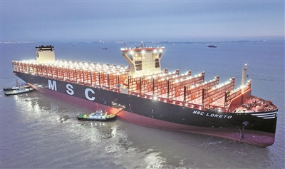 全球最大新造集装箱船“鑫福103”轮前往浙江海域开启试航