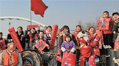 1月29日,徐州航务中心在大吴滨河公园开展第三届“运河春晚上船头”活动。志愿者们自编自导的三句半、单口相声、小合唱等丰富多彩、别开生面的演出,引得船员和附近居民的围观喝彩。活动中,工作人员还为船员送上新春福袋,现场充满了浓浓的年味。吴雨洁/文 刘美子/图