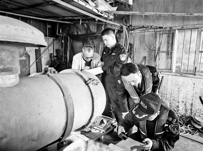 此次现场勘验联合行动后,将根据核查情况及时向岳阳市政府申请对无证趸船进行“三无”船舶认定,为后续处置提供依据。在联合行动中,勘验人员对城陵矶港区内8家维修业主船舶进行核查,重点核查记录了船舶的船舶主尺度情况,对舵机型号、主机型号和编号、发电机型号等船舶的重要设施设备基本信息进行了勘查登记,针对无铭牌或无法辨识的设施情况,勘验人员通过设备生产厂家、船厂等途径进行核实,并进行了现场拍照留存(见图)。