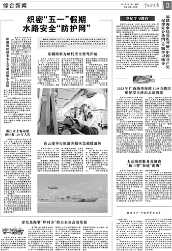 “五一”期间,海事部门将加强恶劣天气预警研判,强化应急值班值守,保证执法力量充足,协调应急救助力量驻守,保障人民群众平安顺畅出行。