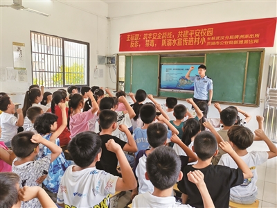 在防溺水宣传中,民警通过播放警示教育片、知识问答等方式,直观地阐明溺水的危险性,并从如何预防溺水、发生溺水如何自救、同伴落水如何正确施救、防溺水“六不准”等方面展开讲解,帮助学生掌握防溺水的意识,掌握自救、施救能力。