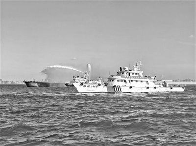 演练模拟海上6.5级地震引发海啸,造成2艘船舶发生碰撞,1名船员落水,1艘船发生火灾,需要紧急处置。宝安海事局在接到报警后,立刻启动应急预案,并以宝安区搜救中心名义协调渔政、水警、消防及方舟救援队等水上应急力量派出船艇前往现场进行搜救。演练共有十余家单位及部门参与。张植凡/文 龚振/图