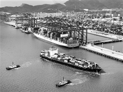 3月8日凌晨,“斯皮尔卡亚”集装箱轮缓缓靠泊宁波舟山港金塘港区大浦口集装箱码头(如图),舟山海关、边检等口岸管理部门第一时间为其办理船舶进出港和集装箱验放手续。