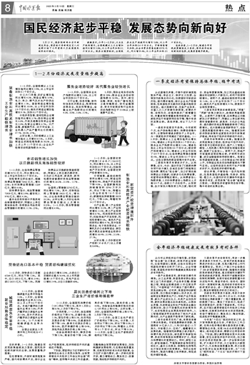总体来看,1—2月份,随着各项宏观政策继续发力显效,国民经济延续向新向好态势,发展质量稳步提高。