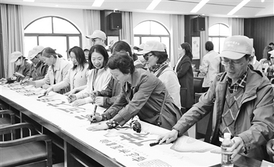 图为大家在“传承运河文明 赓续民族文化”条幅上签名明志,在文化传承的长卷上镌刻下时代的鲜活印记。