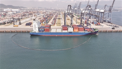 日前,船舶载运危险货物泄漏应急处置综合演练在大连大窑湾港区举行。演练模拟高温天气下一艘载运过氧化氢二异丙苯的集装箱船在卸货过程中突发泄漏,导致空气和海域污染,船上人员出现挥发性气体吸入的紧急状况。在大连市船舶载运危险化学品事故应急指挥部的统一指挥下,相关单位协同消防、应急救援、医疗、船舶污染清除等专业力量,完成了挥发性气体稀释、伤员救助、泄漏货物转移、海上污染清除、空气质量检测、水质取样化验共八个科目。