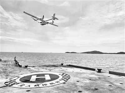 很快,训练被挪到了海上。潘俊滔告诉记者,最大难关其实是无人机在海上的起降:船舶摇晃,风向不定,无人机与甲板相对运动,降落时风险极高。为了攻克这一难题,支队与无人机厂家反复沟通,最终引入了特殊的“起降毯”。