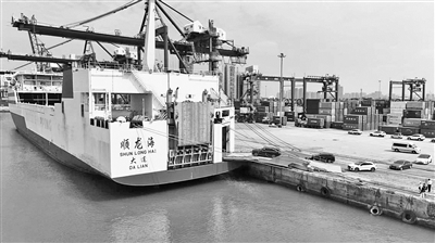 据了解,“顺龙海”轮为节能环保型货滚船,载重10838吨,长193米,设4层汽车舱,可载轿车约600辆,船舶各层可满足同时作业、高效装卸等要求。