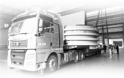 在浙江富春江水电设备有限公司,重达39吨的水轮发电机组定子机座装车完毕,司机正在核对清点证件,准备出发前往智慧核验点进行自助核验。